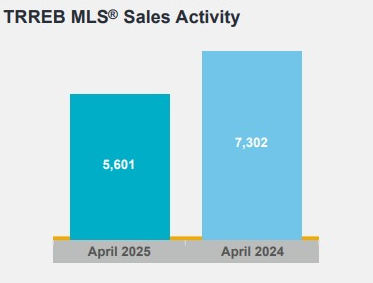 GTA REALTORS® reported 5,601 home sales through TRREB’s MLS® System in April 2025 – down by 23.3 per cent compared to April 2024. New listings in the MLS® System amounted to 18,836 – up by 8.1 per cent year-over-year. On a seasonally adjusted basis, April home sales edged up month-over-month compared to March 2025.