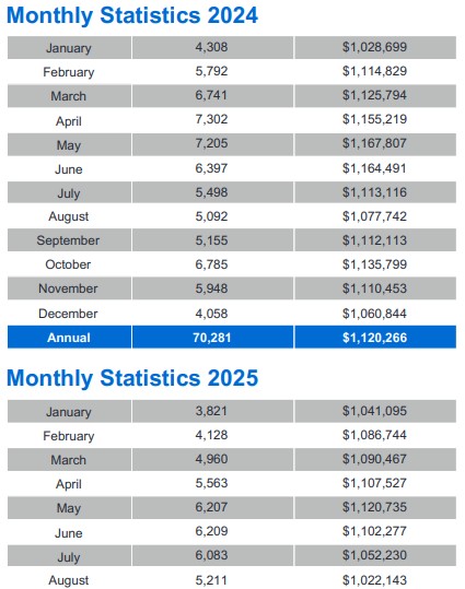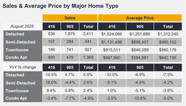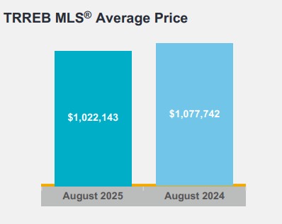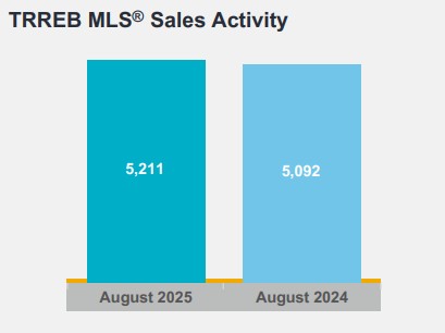 Greater Toronto Area (GTA) REALTORS® reported 5,211 home sales through TRREB’s MLS® System in August 2025 – up by 2.3 per cent compared to August 2024. New listings entered into the MLS® System amounted to 14,038 – up by 9.4 per cent year-over-year.