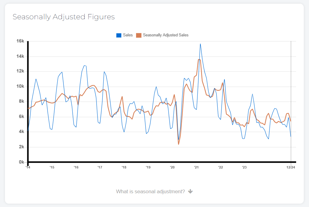 “Market conditions varied by market segment in 2024. Sales of single-family homes, including detached houses, increased last year, whereas condo apartment sales were down. Many would-be first-time buyers remained on the sidelines, anticipating more interest rate relief in 2025. The lack of first-time buyers impacted the less-expensive condo segment more so than the single-family segments,” said TRREB Chief Market Analyst Jason Mercer.