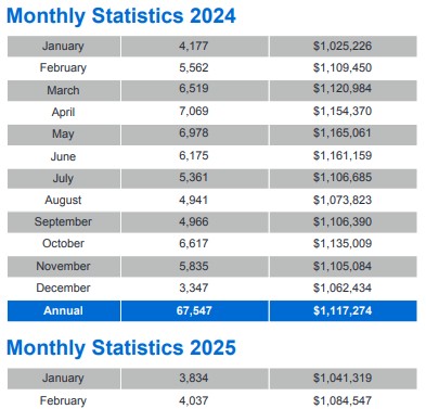 GTA REALTORS® reported 4,037 home sales through TRREB’s MLS® System in February 2025 – down by 27.4 per cent compared to February 2024. New listings in the MLS® System amounted to 12,066 – up by 5.4 per cent year-over-year. On a seasonally adjusted basis, February sales were down month-over-month compared to January 2025.