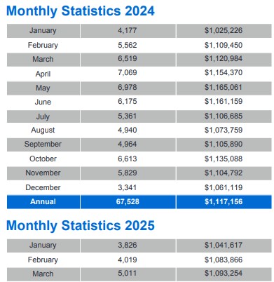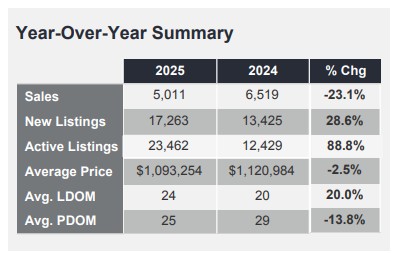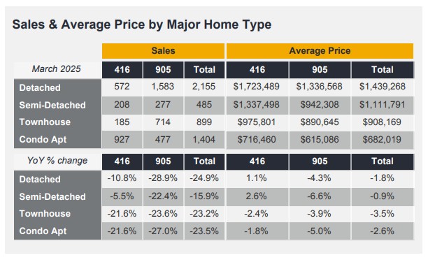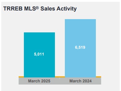 GTA REALTORS® reported 5,011 home sales through TRREB’s MLS® System in March 2025 – down by 23.1 per cent compared to March 2024. New listings in the MLS® System amounted to 17,263 – up by 28.6 per cent year-over-year. On a seasonally adjusted basis, March sales were down month-over-month compared to February 2025.