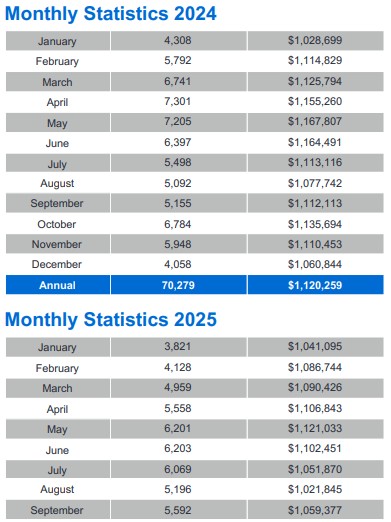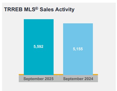 GTA REALTORS® reported 5,592 home sales through TRREB’s MLS® System in September 2025 – up by 8.5 per cent compared to September 2024. New listings entered into the MLS® System amounted to 19,260 – up by four per cent year-over-year.
